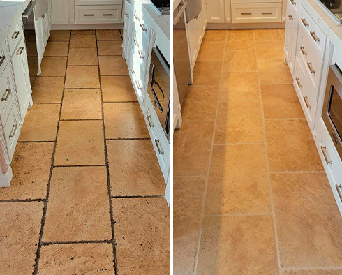 The porcelain surface of this kitchen floor had lost much of its beauty to foot traffic and other external factors.
